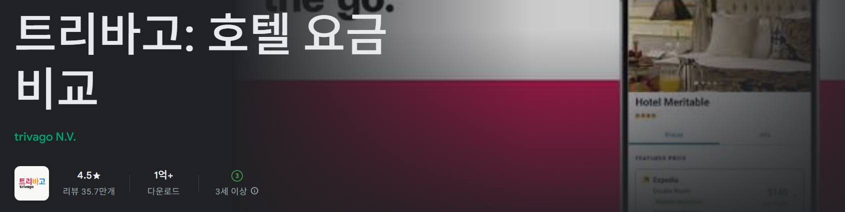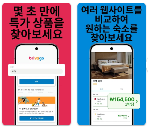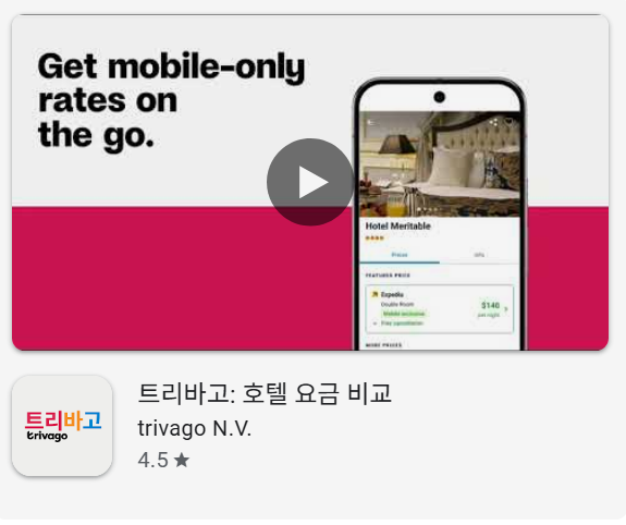 - 안드로이드: 구글 플레이스토어에서 “트리바고” 또는 “trivago” 검색 후 설치합니다.
