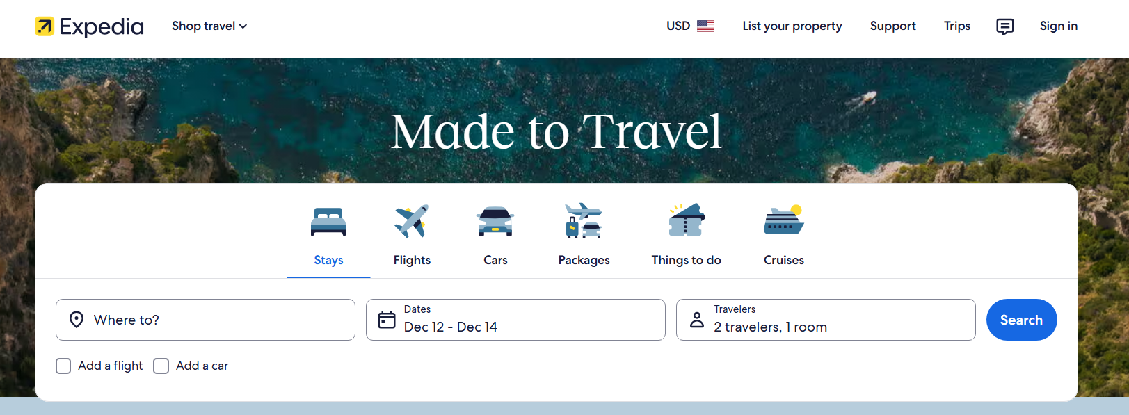 익스피디아는 숙소 예약뿐만 아니라 항공권, 렌터카, 투어 상품까지 한 번에 예약 가능한 종합 여행 플랫폼입니다. 여러 여행 상품을 묶어서 예약하면 추가 할인을 받는 경우도 있어 여행 일정을 전체적으로 계획하시기에 유리합니다.