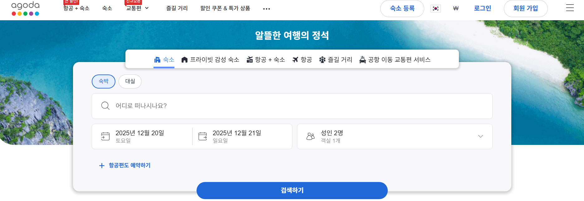 아고다는 특히 아시아 여행지에 강점이 있는 호텔 예약 사이트로 알려져 있습니다. 동남아시아, 일본, 한국 등 아시아 지역 숙소 가격 비교와 할인 혜택 제공이 강점이며, 회원에게 제공되는 AgodaCash 포인트 시스템과 할인 프로모션으로 인기가 높습니다.